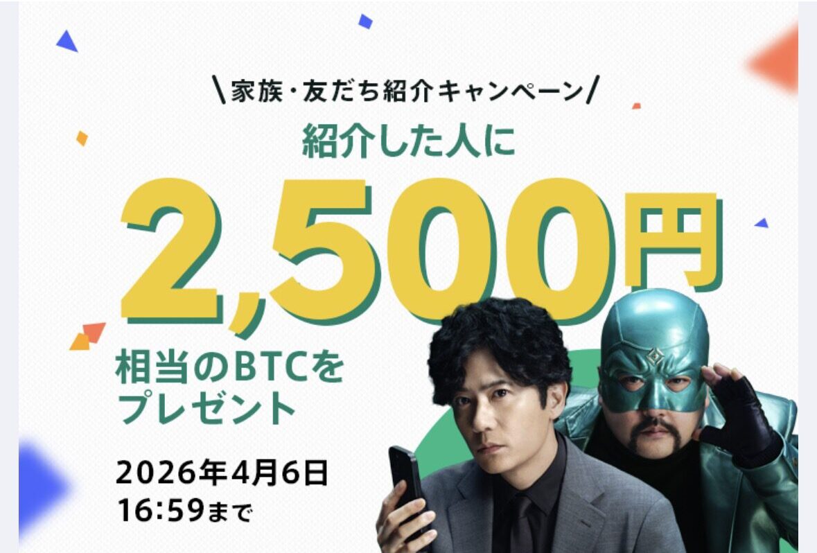 2026年1月30日までに以下の招待リンク経由で新規登録すると、「2,500円相当のビットコイン(BTC)」が無料でもらえる!!#pr