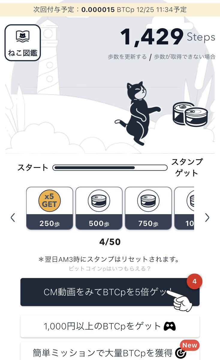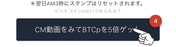 スタンプ交換時に10秒〜1分程度の動画広告を視聴すると獲得ビットコインが5倍になります。