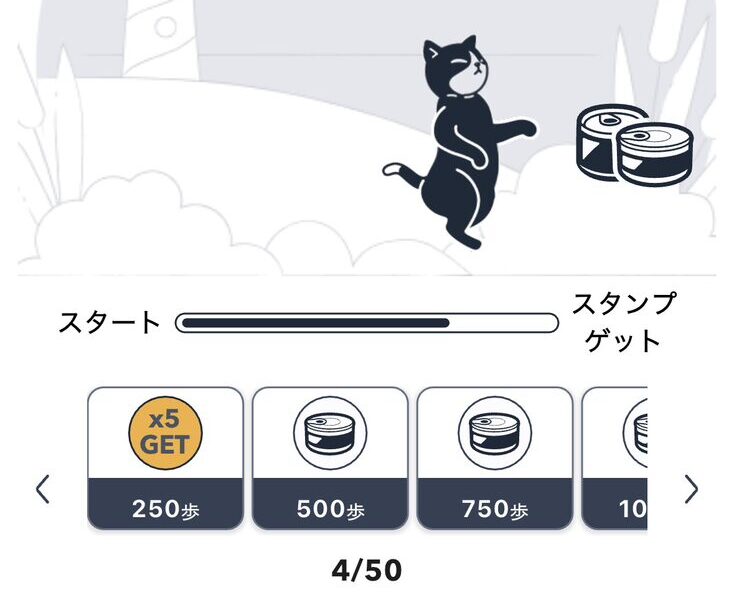 250歩ごとにスタンプ1個が貯まり、1日最大40個(=20,000歩)までカウントされます。