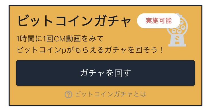 また、CM視聴で回せるガチャ機能もあり、毎日1回ルーレットを回して運が良ければビットコインをゲット可能です。