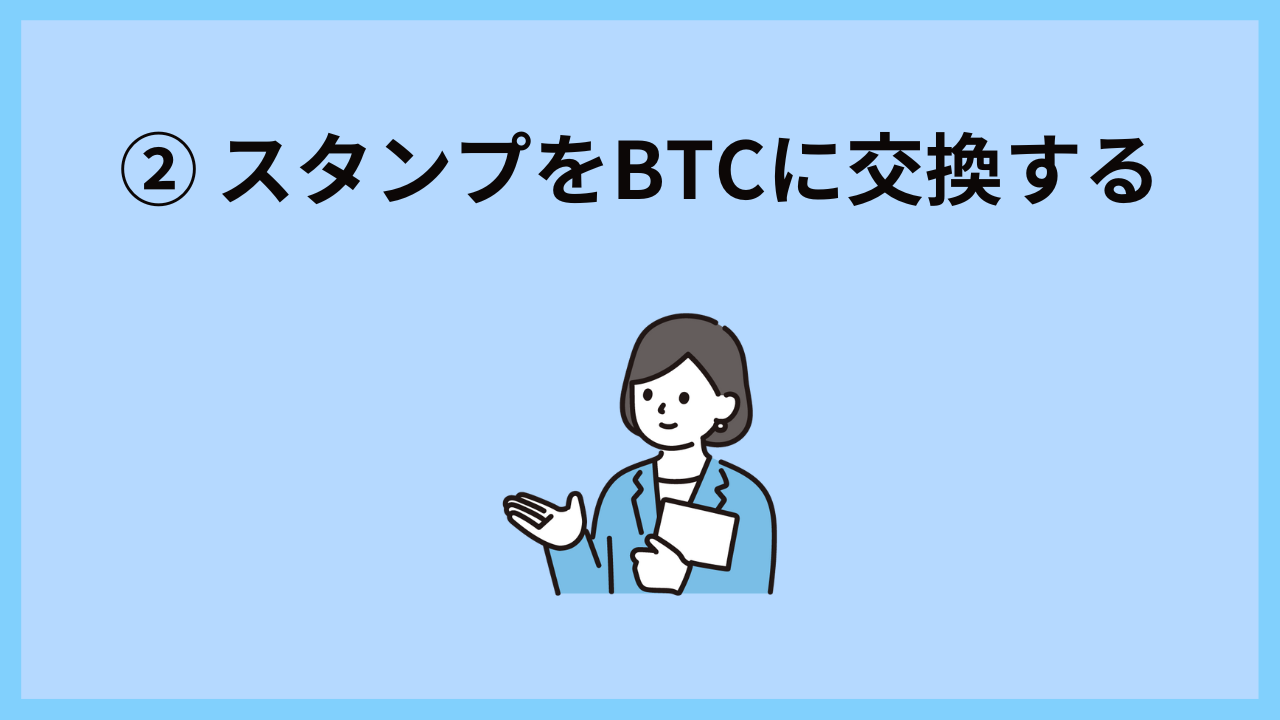 貯まったスタンプは当日中にビットコインへ交換可能です。