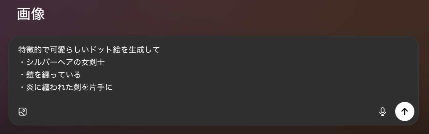 チャット欄にテキストプロンプト画像を入力しましょう。