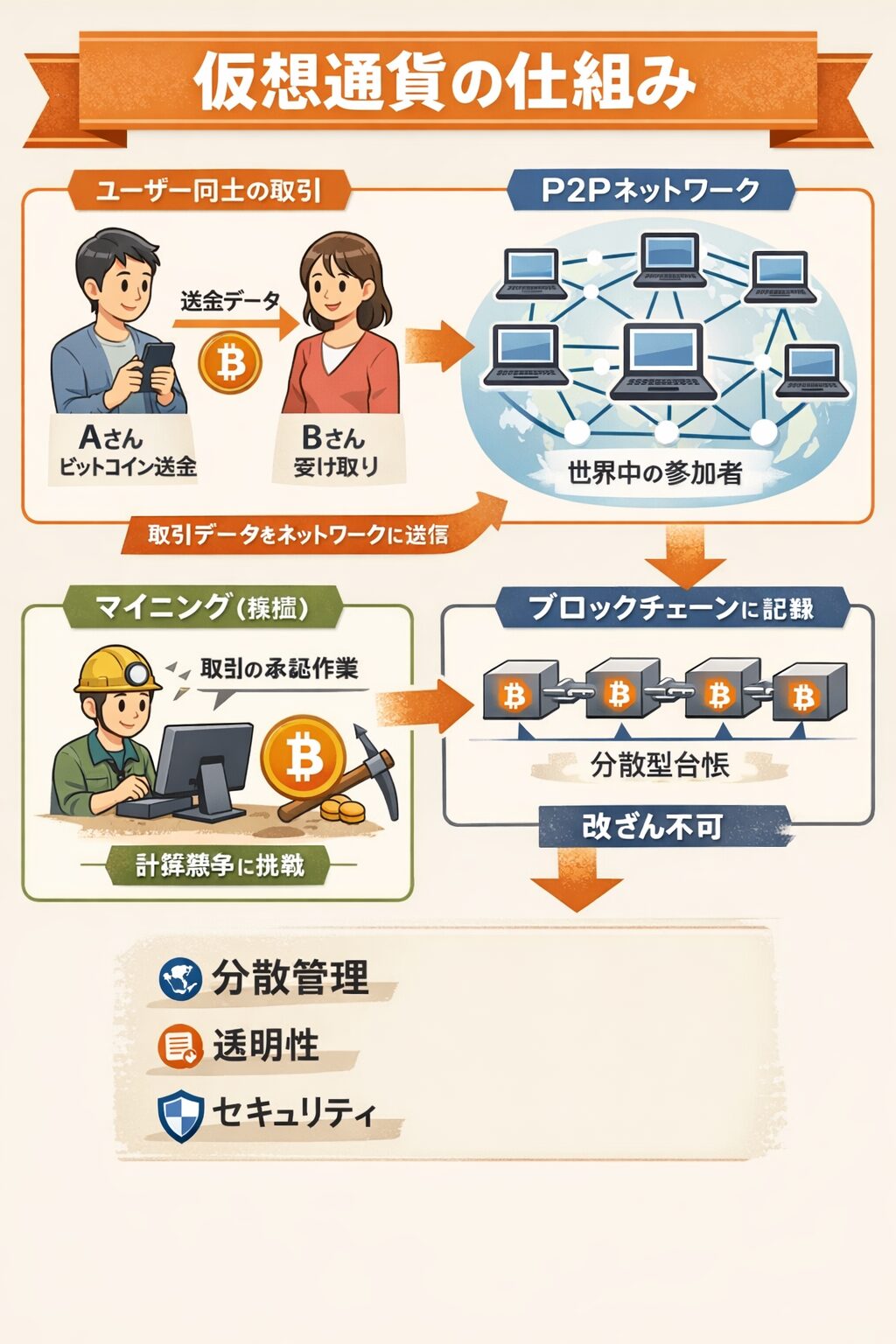 ▶︎GPT Images 1.5で作成した「仮想通貨の仕組み図解」