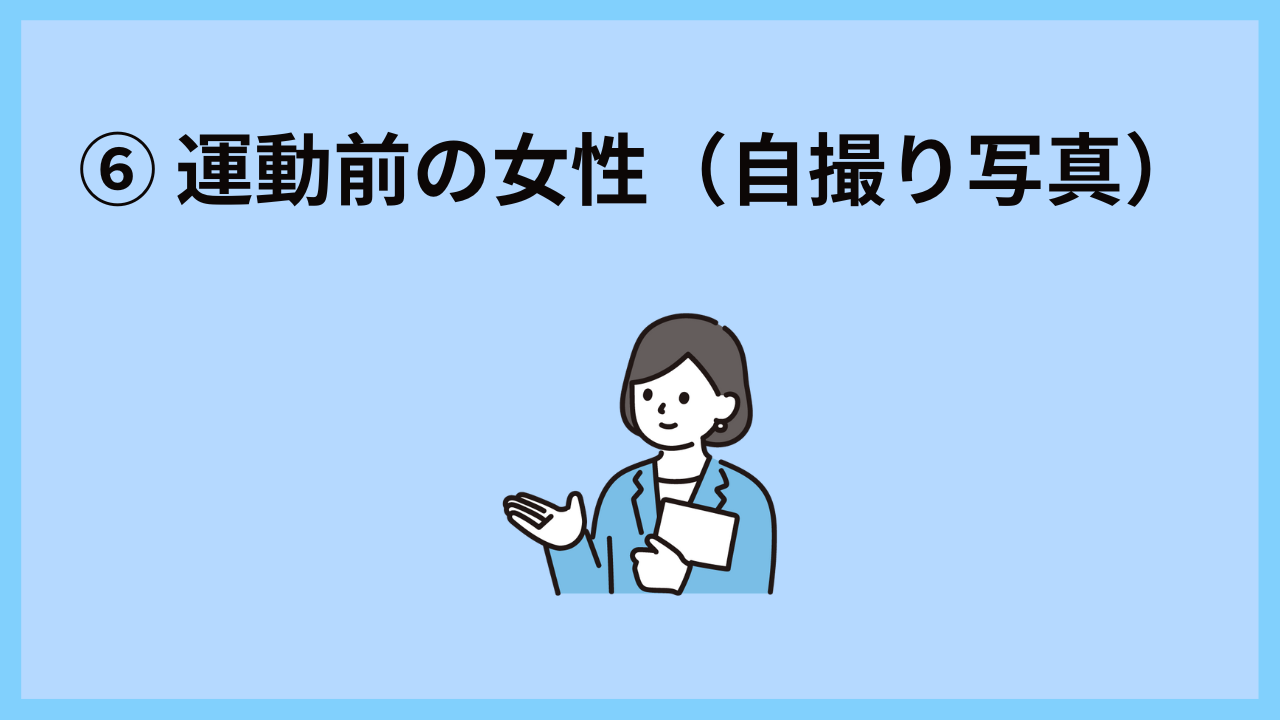 ⑥ 運動前の女性(自撮り写真)