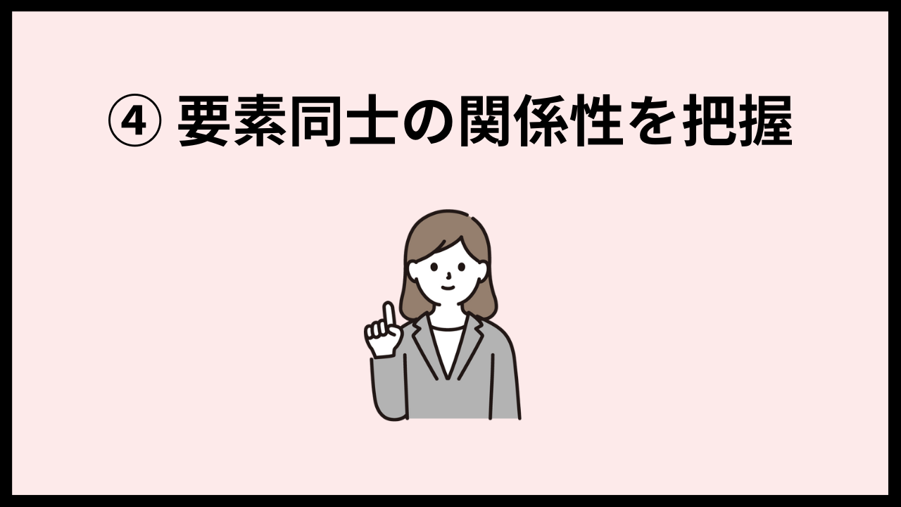 ④ 複雑な要素同士の関係性を把握