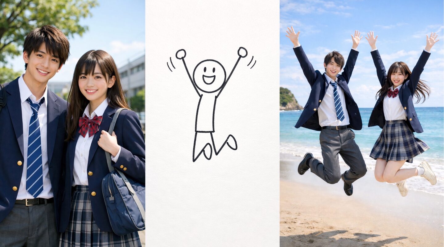 爽やかイケメンの男子高校生と美少女の女子高生を作成して