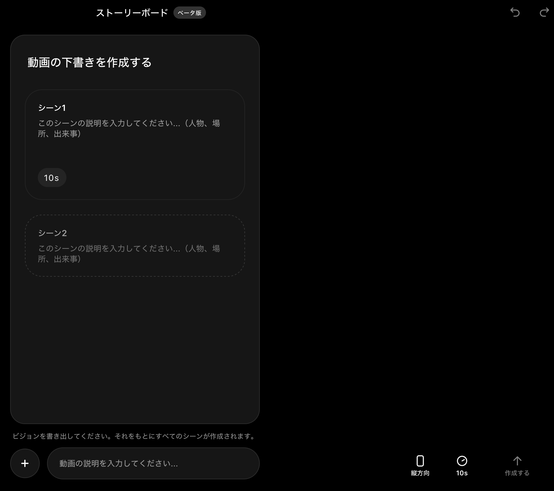 Sora 2最大の特徴は、テキストや画像といったプロンプトを入力するだけで10秒〜20秒の動画クリップを自動生成できることです。